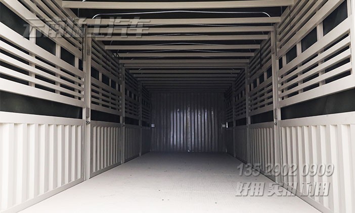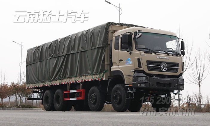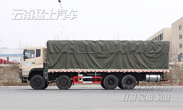 東風前四后八倉欄車,用于運輸牛羊畜牧、鮮果蔬菜、木材家具、也可加裝雙層舍棚用來運輸家禽。為方便長期在越野道路行駛,該車配備了拖車鉤、絞盤、剎車降溫水箱、行李架。
