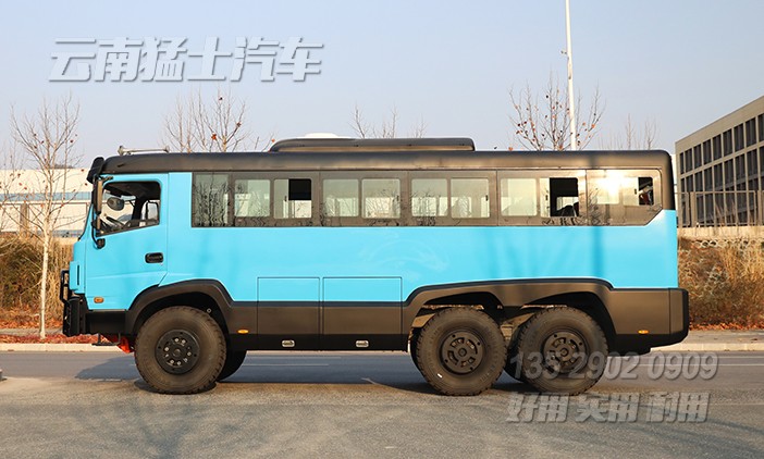 東風(fēng)六驅(qū)25座越野型客車采用康明斯210馬力發(fā)動機(jī),專用的越野輪胎,涉水越障都經(jīng)過嚴(yán)格的檢測,是一款符合越野標(biāo)準(zhǔn)的專用型客車。