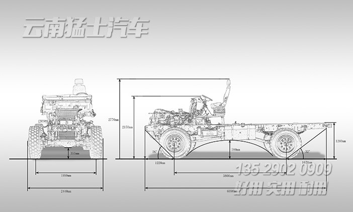 四驅越野型三類底盤是根據客戶需求定制的一款專用型底盤車,最大的特點便是該車裝配了自動擋變速箱,駕駛更舒適,該底盤有著出色的越野性能,爬坡度達60%,355mm的最小離地間隙可以通過很多巖石碎石路面。