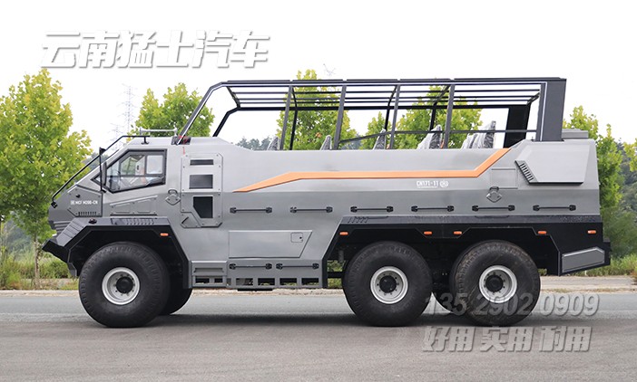 六驅(qū)沙漠景區(qū)沖浪車是一轉(zhuǎn)定制化的非公路人員運輸車,主要用于沙漠地區(qū)游客游玩使用,可乘坐18人。