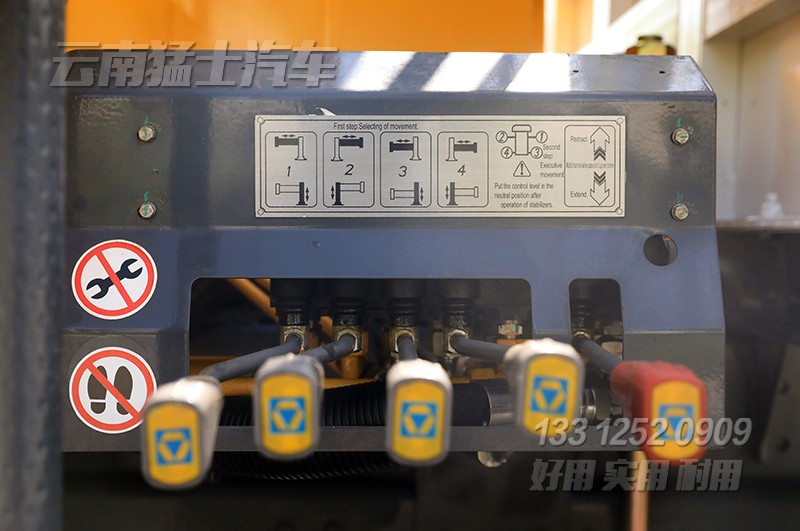 考慮在戶外工作環(huán)境不定,在吊裝作業(yè)時可能存在盲區(qū),所以該車設置了多個操作區(qū)域,確保吊裝作業(yè)時的安全。